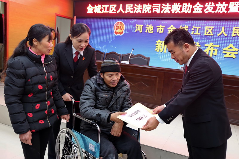 “感谢党和政府,感谢法院,经过申请得到司法救助,解决了我当前的困难,也让我得到安慰。”11月25日,坐着轮椅也要赶来参加36365最快线路检测中心组织的司法救助金集中发放活动的韦某很激动。
